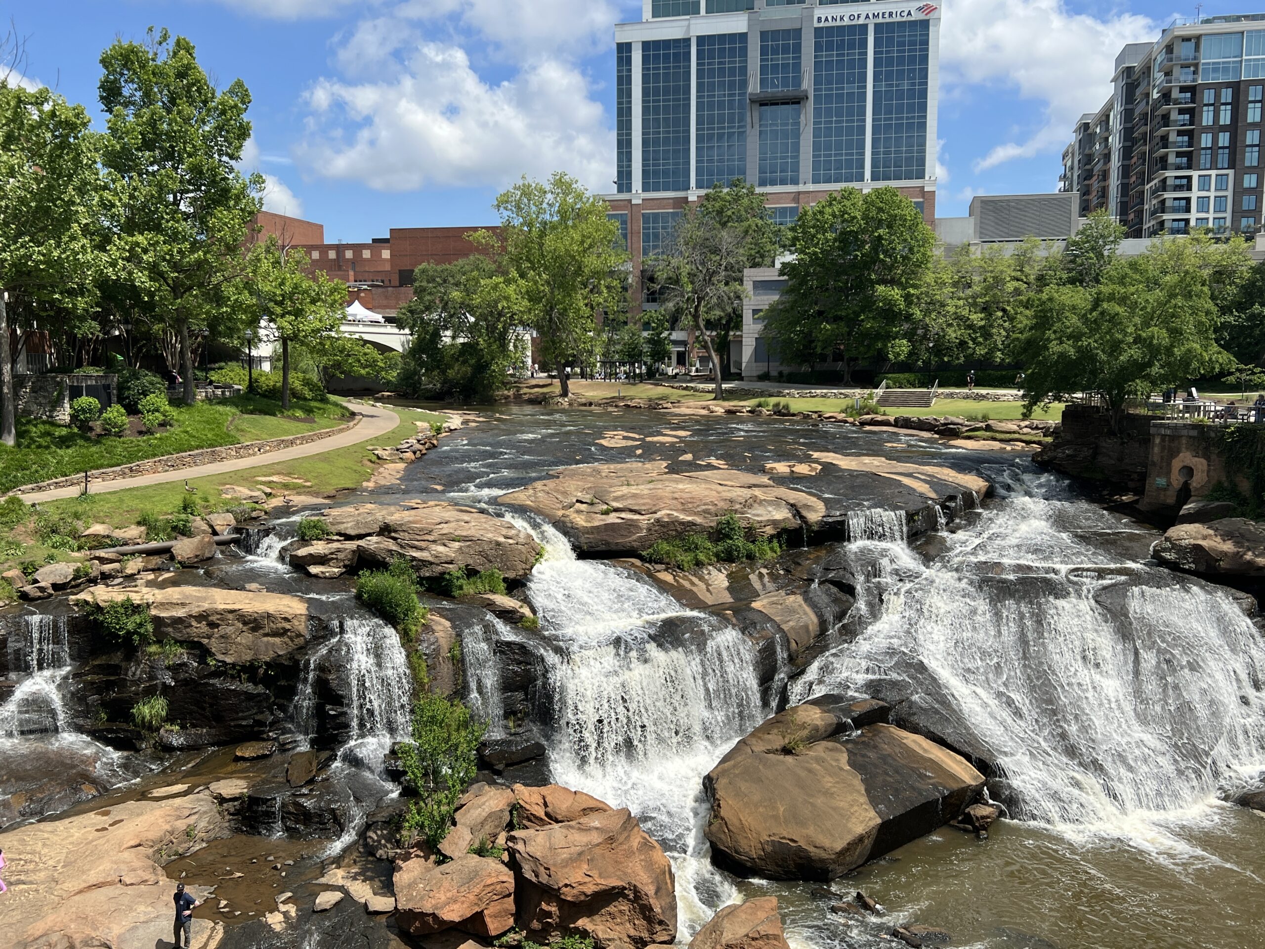 The Falls Park Riverscape Extension is an approximately one-acre greenspace that meanders along the prominent Reedy River and endeavors to enhance Greenville’s award-winning Falls Park that totals over 32-acres in the city center.