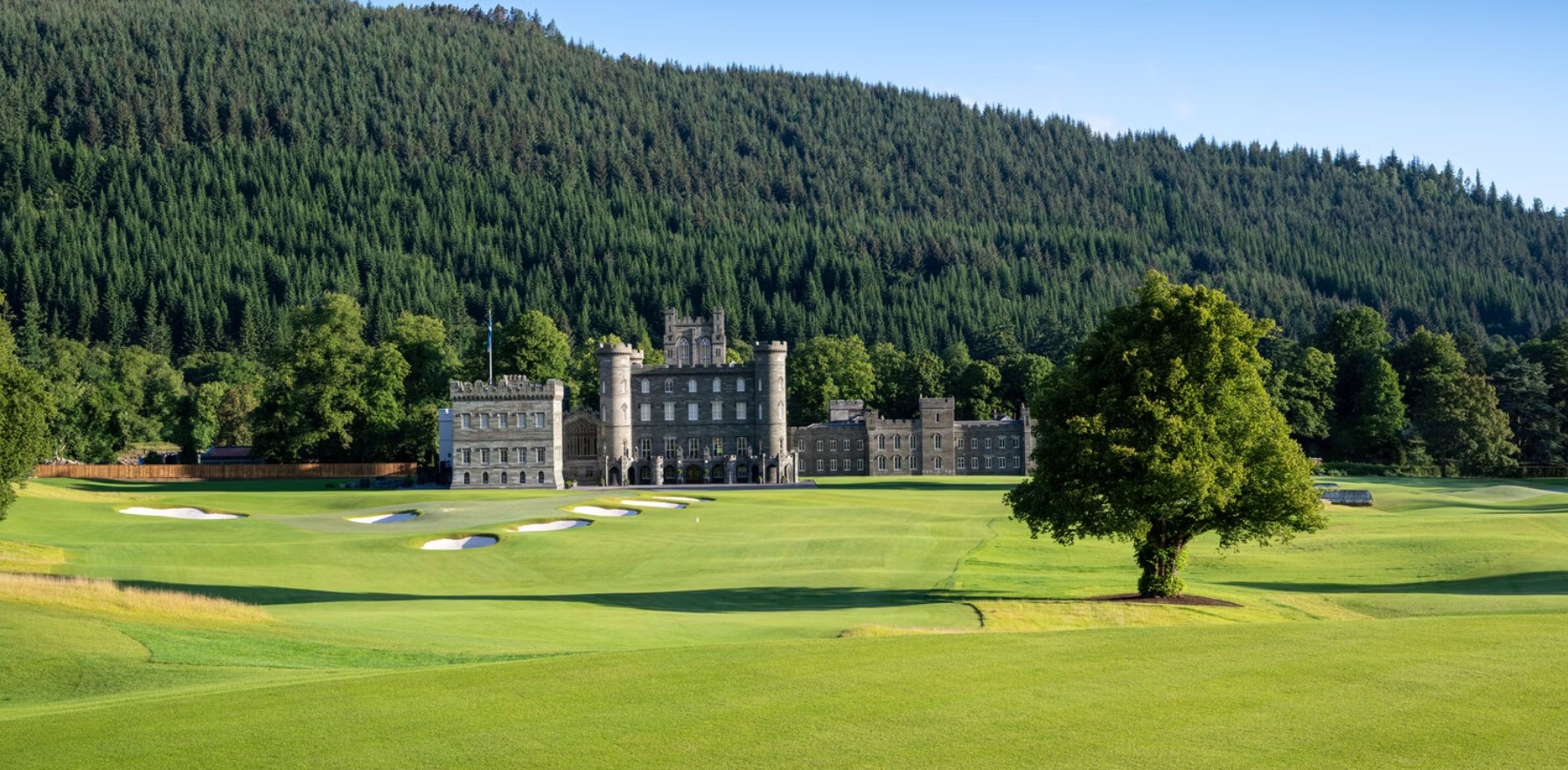 Taymouth Castle Golf Club is situated in the heart of highland Perthshire along the river Tay with majestic views of the Lawes mountain range and surrounding Scottish countryside. Taymouth Castle stands on the site of the ancient Balloch Castle, which was built in 1550 for Sir Colin Campbell of Glenorchy. Laid over the Castle’s former deer park, the newly renovated 18-hole course has been lengthened and modernized to fit any royal outing.