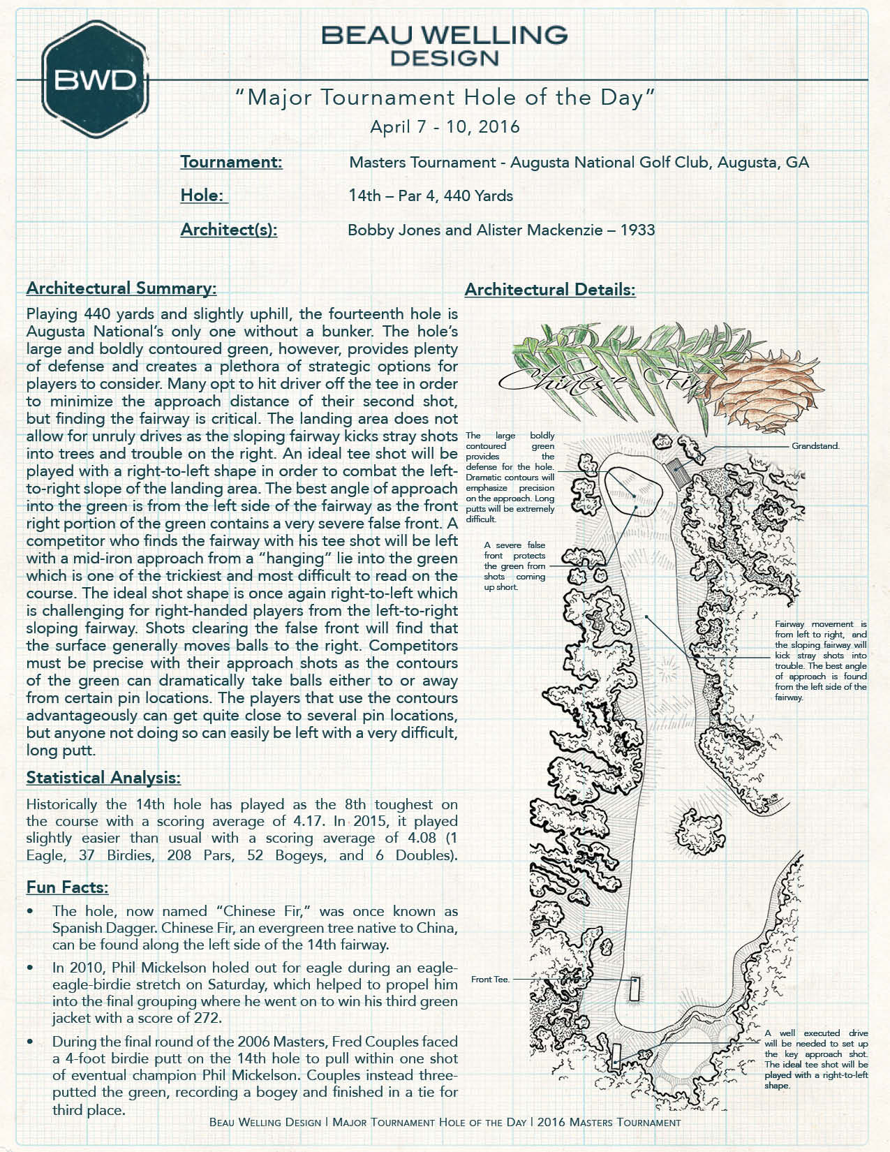 The BWD Major Tournament Hole of the Day: The 14th at Augusta National, Home of the Masters Tournament